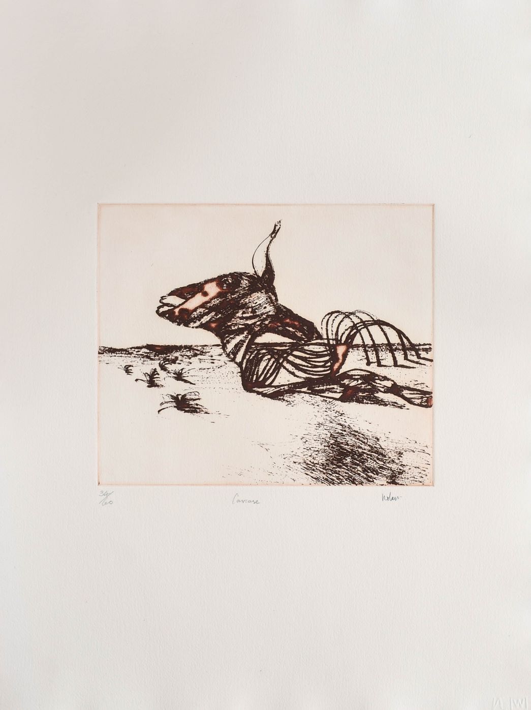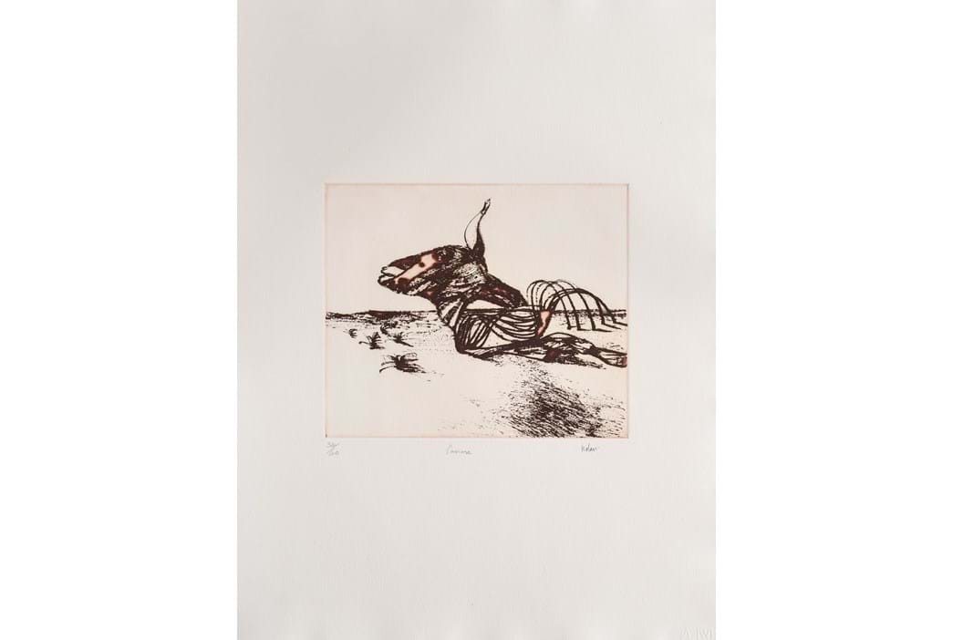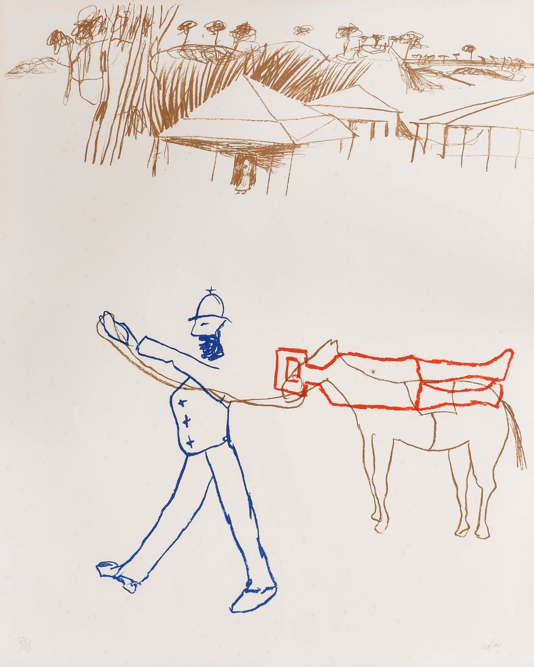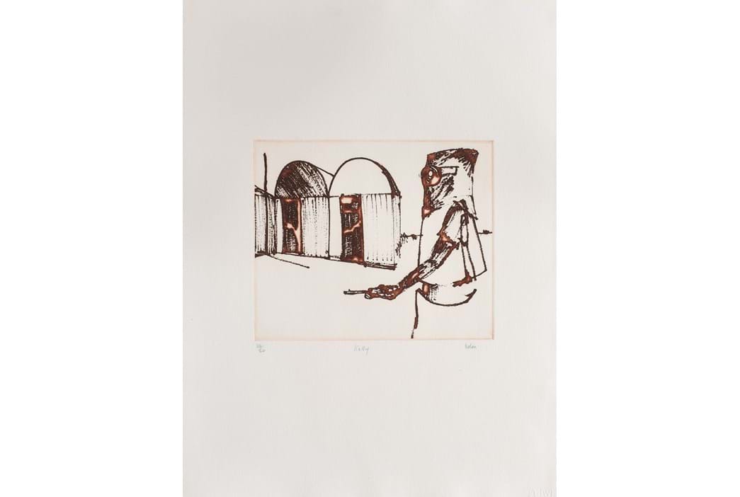 A selection of four works by Nolan are offered in Tennants’ Modern & Contemporary Art Sale on 25th June. The works were gifted to the vendor, who worked for Nolan’s widow, Mary, for many years. On offer is ‘Greece’, a mixed-media depiction of a sailing dinghy off the Grecian coast, painted whilst Nolan was staying on the island of Hydra with Australian writers George Johnston and Charmian Clift (estimate: £1,000-2,000), a lithograph ‘Ned Kelly I’ (estimate: £300-500), and two etchings depicting Ned Kelly and a cow carcass in the Outback (estimate: £300-500 each).