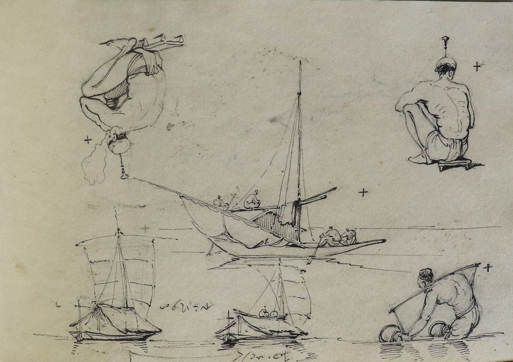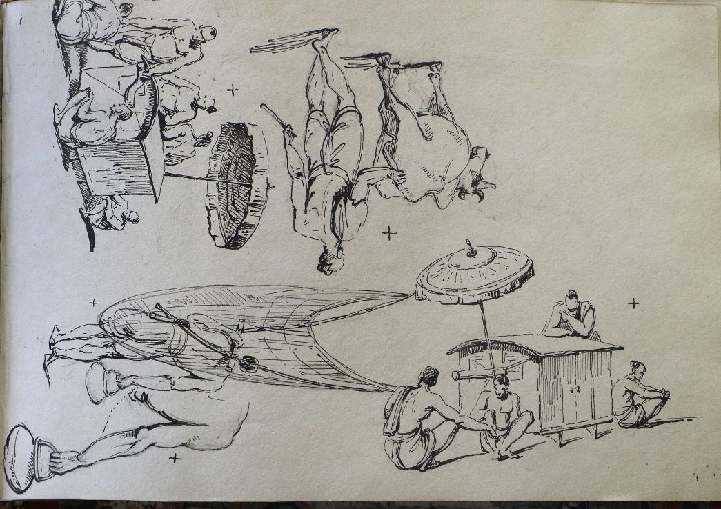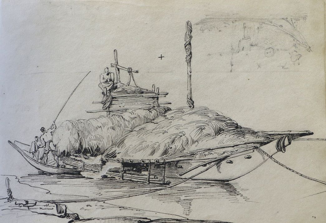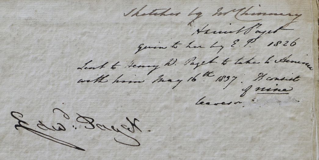 It is these vivid depictions of ordinary people, thought to be of Southern China, that fill the pages of the present sketchbook, which is on offer with an estimate of £4,000-6,000 (plus buyer’s premium). The book contains scenes of a breast-feeding mother, men praying, squatting, sitting, smoking and sleeping, dogs, cattle, and a team loading a large boat, and is annotated with a modified version of the shorthand taught to Chinnery by his writing master father. The sketch book, according to an inscription, was given to Harriet Paget in 1826 by General Sir Edward Paget GCB (1775-1849), a British Army officer, Governor of Ceylon and Commander-in-Chief in India. It was then lent in 1837 to Henry W Paget (1768-1854), 1st Marquess of Anglesey and Earl of Uxbridge who lost his leg at Waterloo.