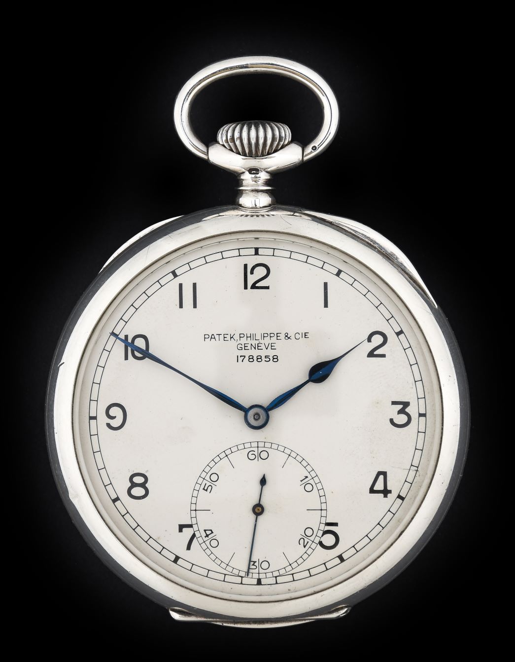 Amongst the pocket watches in the sale, a fine and rare Patek Philippe & Cie silver open-faced keyless lever deck watch sold for £10,000 against an estimate of £2,500-3,000. Patek Philippe introduced this reference in the 1930s as navigation aids, using movements that were made earlier; the present example has a movement dating from circa 1916, and a case dating from the late 1930s/early 1940s. A precision instrument, it features the high-quality calibre 21 Guillaume balance, which was designed to be unaffected by changes in temperature during use at sea.