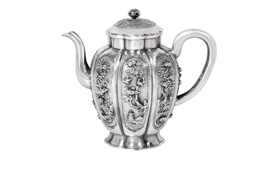 A fine and rare George III Silver Wine Jug, the separated pair to one sold at Tennants in 2021, sold for £15,000. Made by Thomas Heming of London in 1765, the pear-shaped jug is adorned with wave decoration, spiral-fluting and a band of chased fruiting grapevines. Whilst the general shape most resembles a beer jug, the ornament clearly suggest that it was originally intended for wine. Whilst the early history of the pair is unknown, it is thought that they were once in the possession of Major General Henry Aylmer (1813-1904), who gave a jug each to two of his sons; they subsequently passed by descent through two different branches of the Aylmer family. The present jug, according to an inscription, was given to John and Peggy Pemberton as a wedding gift in 1936 by Henry Adolphus Paget Aylmer and his wife Anne Munro Williams. Further notable results in the silver section included James I Parcel-Gilt Silver Apostle Spoon, made by Daniel Cary of London in 1622 (sold for £4,000), and a Chinese Silver Rice-Wine Ewer, probably of the Qianlong Period and with marks for importer Cornelis Knuystingh, Rotterdam, 1793 (sold for £8,000). A George V Silver Basket of 1911 by Goldsmiths and Silversmiths Co. Ltd. sold well, too at £6,000, a Pair of Elizabeth II Silver Pheasant Ornaments by Garrard and Co. Ltd. sold for £4,000, and a Continental Gold-Mounted Amethyst, Diamond and Enamel Pill-Box sold for £2,500.