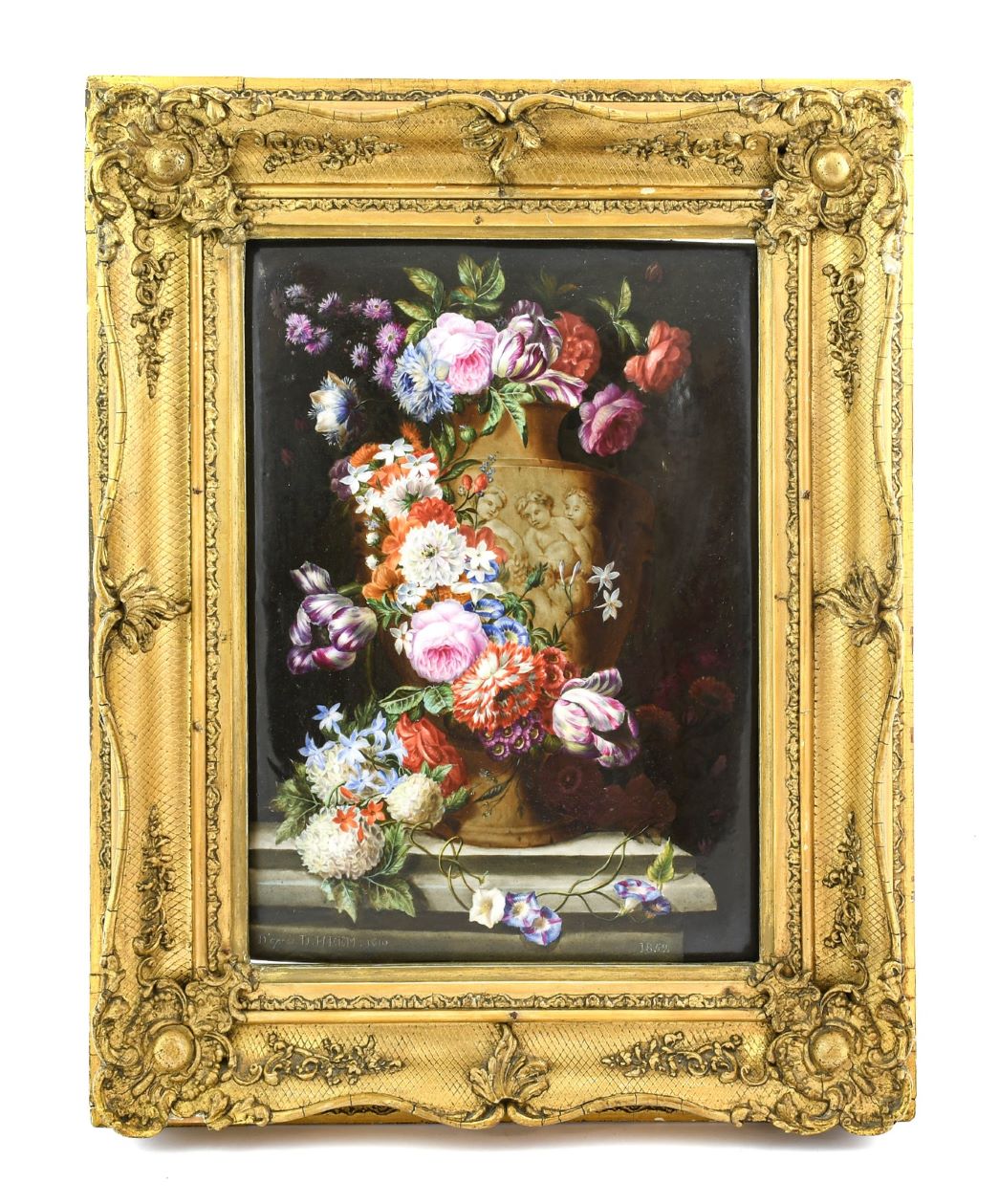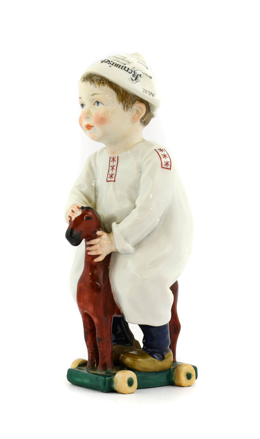 Amongst a good offering of ceramics in the sale is a Mintons Pâte-sur-Pâte Plaque by Louis Marc Emmanuel Solon, made circa 1872 and depicting Cupid standing at an anvil with a kneeling classical soldier and a maiden in a temple, flanked by putti (estimate: £2,000-3,000). Solon was instrumental in perfecting the painstaking pâte-sur-pâte technique, in which liquid white porcelain is applied by brush to a coloured ground layer by layer. The porcelain is then carefully carved back to create a finely detailed and translucent design. Solon trained at the Sevres factory but moved to England in 1870 at the time of the Franco-Prussian War. He soon found employment at the Minton factory, which became a centre of excellence for pâte-sur-pâte. A beautifully painted Porcelain Plaque painted in 1852 in the manner of Joseph Nigg is on offer with an estimate of £3,000-5,000. The unusually large plaque depicts a riot of flowers tumbling from a classical urn, an image taken from an early 17th century painting by Jan Davidsz. de Heem. Of interest to collectors will be a Meissen Porcelain “Hentschel Kinder” Figure, made circa 1905 (estimate: £500-700). The figure, a young boy with a newspaper hat riding a hobbyhorse, is one of a series of naturalistic figures depicting early childhood modelled by Julius Konrad Hentschel between 1904 and 1907, which captured the unadulterated joys of childhood.