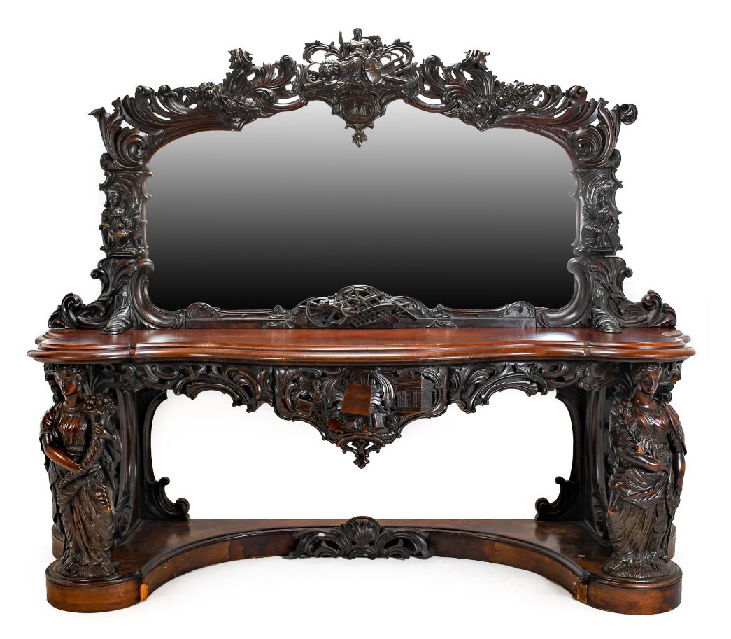 Further highlights from the section include an imposing Victorian Carved Mahogany Mirror-Backed Sideboard from the late 19th century, which is decorated with vines, fruit, figural supports and Masonic symbols (estimate: £2,000-3,000), and a 19th century Mahogany and Blind Fret Carved Desk in George III Chippendale style (estimate: £1,500-2,000).