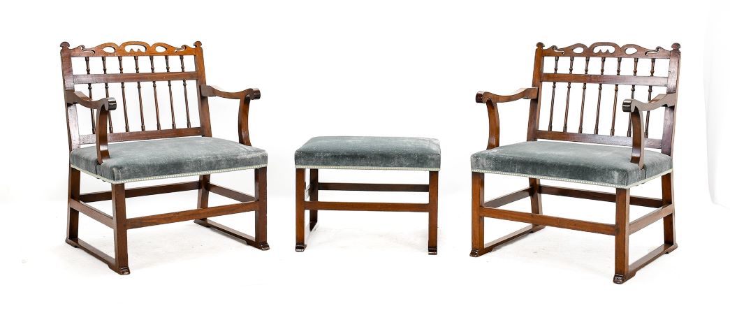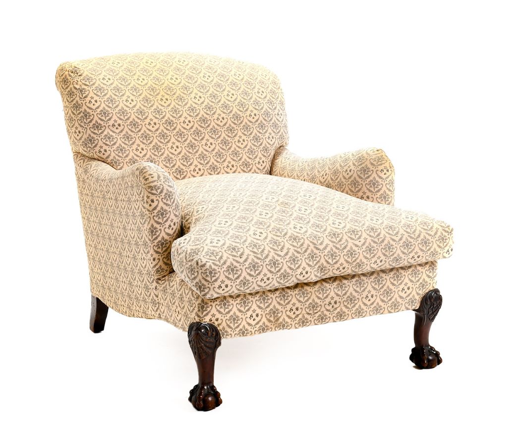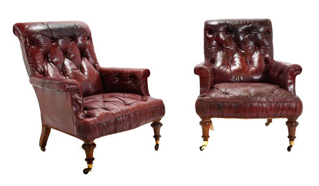 Fine furniture in the sale includes a good selection of chairs, such as a Pair of Victorian Mahogany Armchairs, made by Mackenzie and Crosbie of Edinburgh in the middle of the 19th century. Covered in vintage buttoned red leather, the chairs are offered with an estimate of £2,500-3,500. One of the most desirable makers of upholstered furniture at auction is Howard & Sons, and a late 19th or early 20th century example of their work is on offer in the form of a deep-seated armchair covered in Howard & Sons fabric, with shell and acanthus cabriole forelegs with ball and claw feet (estimate: £1,500-2,000). Also of interest is a Pair of George III Armchairs after a design by Ince and Mayhew, offered alongside a matching footstool with an estimate of £1,000-1,500.
