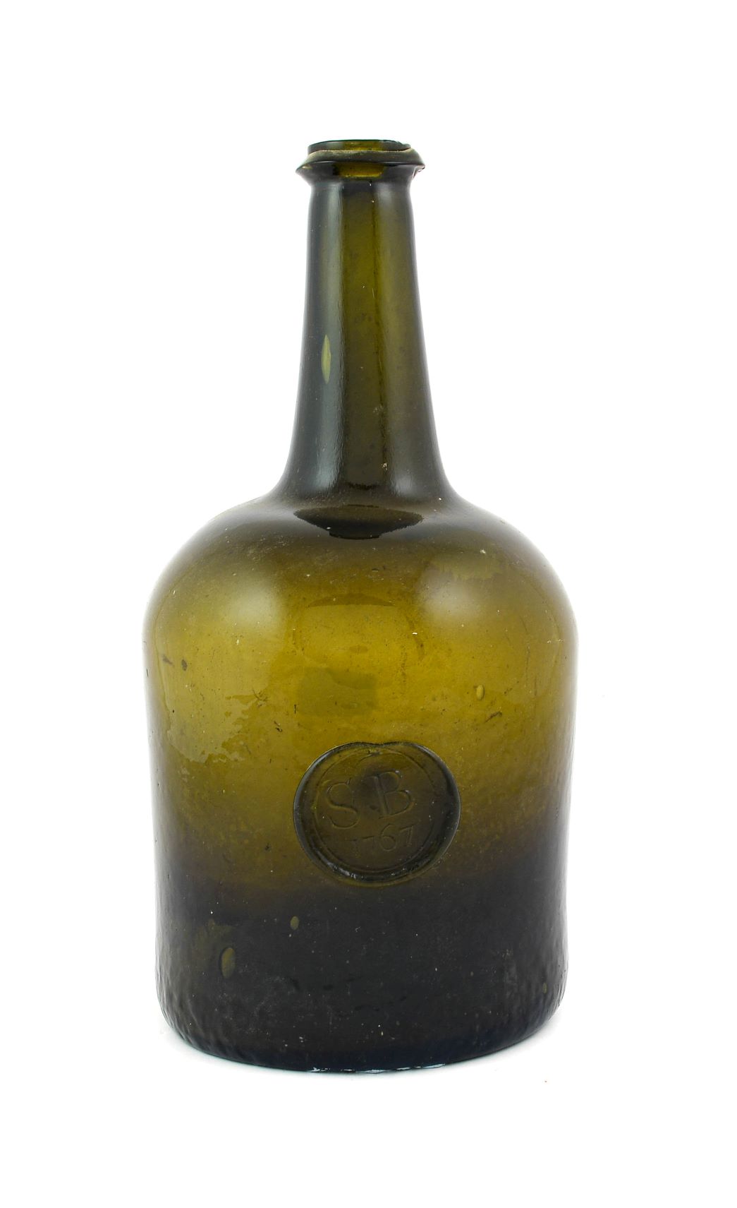 Highlights from the clock section include a William IV Mahogany Striking Table Clock, made by J. Huggins in London circa 1830 (estimate: £1,500-2,000), a Brass Champleve Enamel Striking and Repeating Carriage Clock, retailed by R. Wenrly & Co. of Paris circa 1890 (estimate: £800-1,200), and an Early 18th Century Brass Striking Lantern Clock made by Thomas Sparrow of St Neots circa 1720 (estimate: £800-1,200). Further interesting lots include three 18th century green glass bottles, two of which are marked with initialled and dated seals; one inscribed ‘S.B 1767’ is offered with an estimate of £300-500, and one inscribed ‘S D 1781’ is sold alongside an unmarked bottle with an estimate of £300-500.