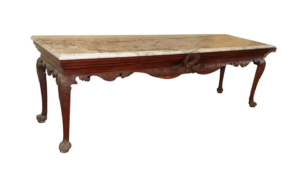 A West Anatolian 17th Century ‘Lotto’ Rug sold for £9,000. Rugs of this design take their name from the Venetian artist Lorenzo Lotto (1480-1557), who used rugs of this distinctive pattern as props in several his paintings. By the start of the 16th century, ‘Lotto’ rugs and carpets had been imported into Northern Europe and beyond from Istanbul and Smyrna and were enormously expensive status symbols. An Irish George II Style Carved Padouk Wood and Marble Top Serving Table sold for £5,500, and a Victorian Figured Walnut and Ebonised Four Door Library Bookcase made in circa 1870 sold for £5,000.