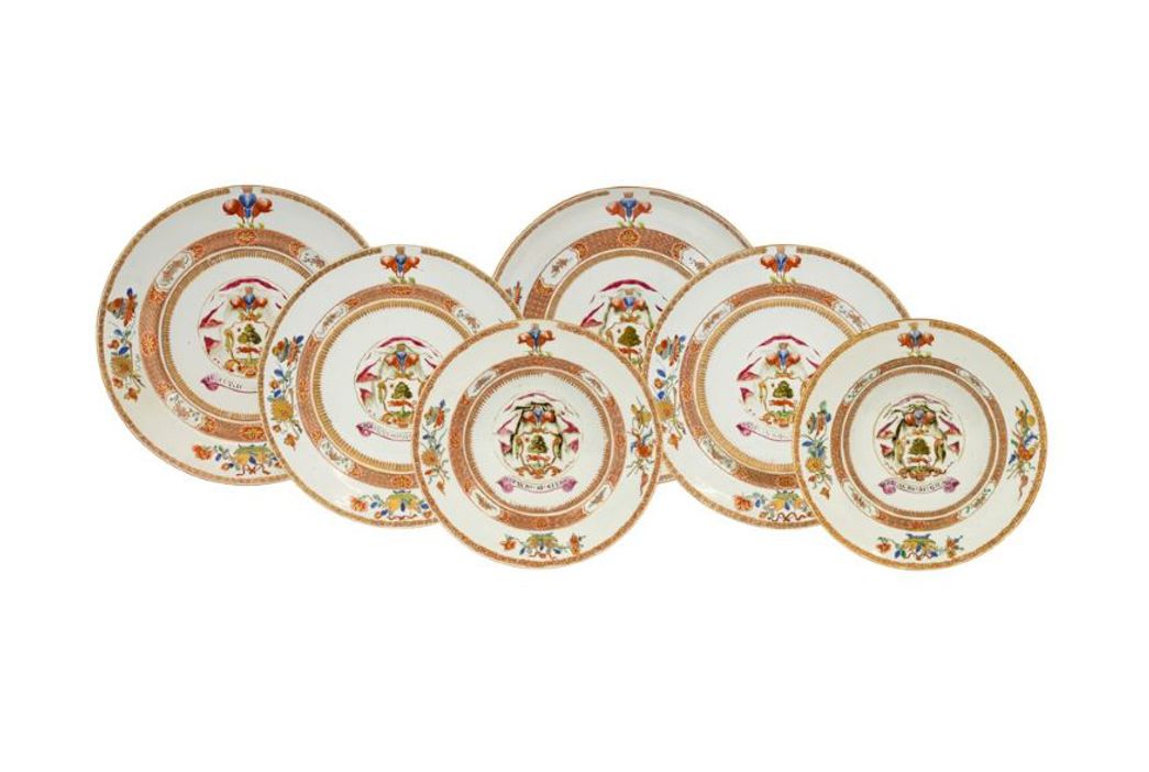 Ceramics in the collection are led by a Chinese Armorial Porcelain Saucer Dish, circa 1722 with the arms of Lambert over a scroll with the motto SEGUITANDO.SI.GIUNGE (estimate: £2,000-3,000). Fifteen more dishes from the same service will be sold in five further lots. The service is discussed in David Howard Sanctuary’s ‘Chinese Armorial Porcelain’, in which it is noted that Sir John Lambert, 1st Baronet was a wealthy London merchant and director of the South Sea Company, and was succeeded by his son, also called John. It has been the unvaried tradition that this service was made for the first baronet although armorially there is no reason why the service could not have been made for Sir John’s son. This service is the earliest dateable example of the new famille rose enamels being used on Chinese porcelain influenced by European originals. The order for the service possibly having been despatched in 1720 or 1721 before the full effect of the bursting of the South Sea Bubble was felt. A Pair of Kakiemon Porcelain Octagonal Beakers, Edo period, circa 1680 are offered with an estimate of £1,000-1,500, and a Set of Three Imari Porcelain Saucer Dishes, Edo period, circa 1710 with an estimate of £1,500-2,000.