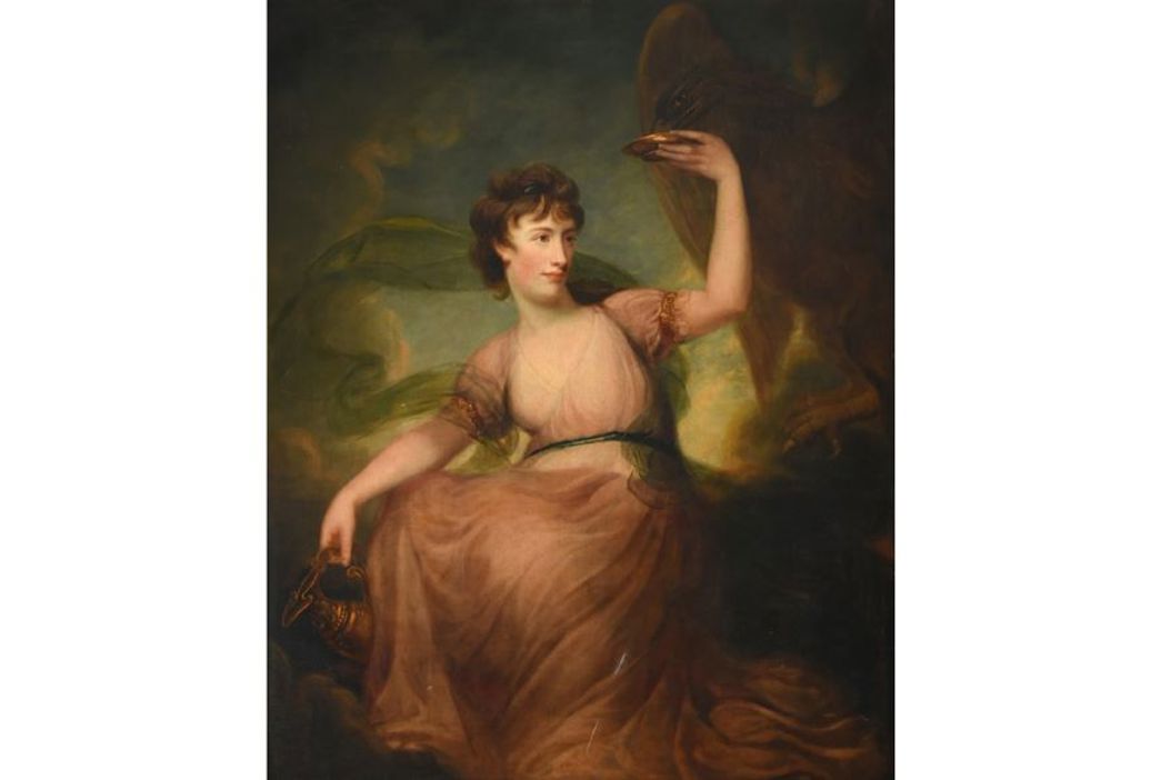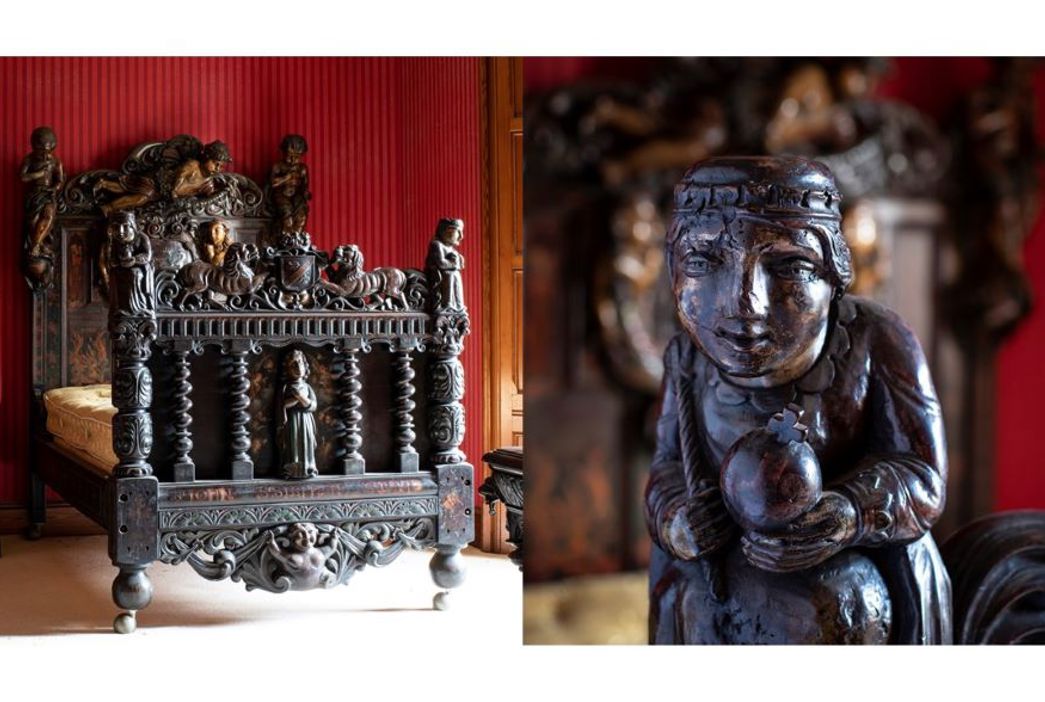 Amongst the Selected Contents of a Private House, to be sold on behalf of the 7th Earl of Durham is an impressive part-17th century Spanish Stained and Polychrome Painted Bed (estimate: £3,000-5,000). Heavily carved with angels, putti, coats of arms, monks, lions and mermaids, the bed is inscribed on three panels ‘A PRESENT FOR MY DEAR SON REGINALD FROM YOUR LOVING MOTHER LADY CAROLINE’. Further lots of good furniture from the house include a George I Walnut and Feather-Banded Chest on Chest made circa 1720 (estimate: £2,500-3,500), a Regency Mahogany Linen Press, attributed to Gillows (estimate: £2,000-3,000), and a 19th Century Dutch Walnut and Marquetry Inlaid Display Cabinet (estimate: £2,000-3,000). Elsewhere in the collection is a Portrait of a lady seated in the guise of Hebe with an Eagle attributed to Henry Thompson RA (1773-1843) (estimate: £2,500-4,000), and a Chinoiserie Gilt Metal Mantel Timepiece from the 19th century (estimate: £300-500).