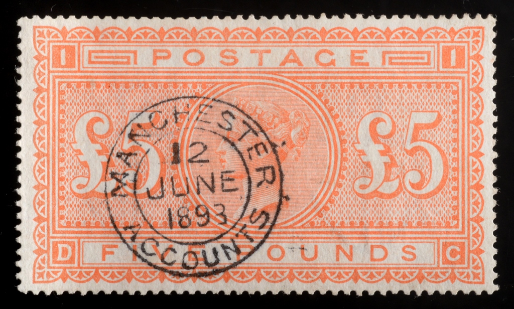 A superb Queen Victoria £5 Orange was one of the highlights of Tennants Auctioneers’ Stamps, Postcards & Postal History Sale on 31st October. A well centred, fine used example, with Manchester cancellation mark for 12 June 1893, the stamp sold for £1,500 (plus buyer’s premium).