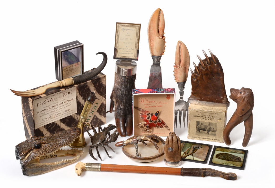 In addition to fine specimens by the likes of Rowland Ward, John Cooper & Sons and Henry Spicer, the collection also includes the weird and wonderful – from 8ft otter poles to a seal’s flipper with metal claw caps and elaborate Victorian mousetraps.