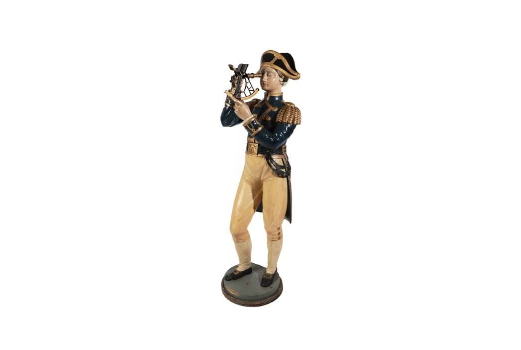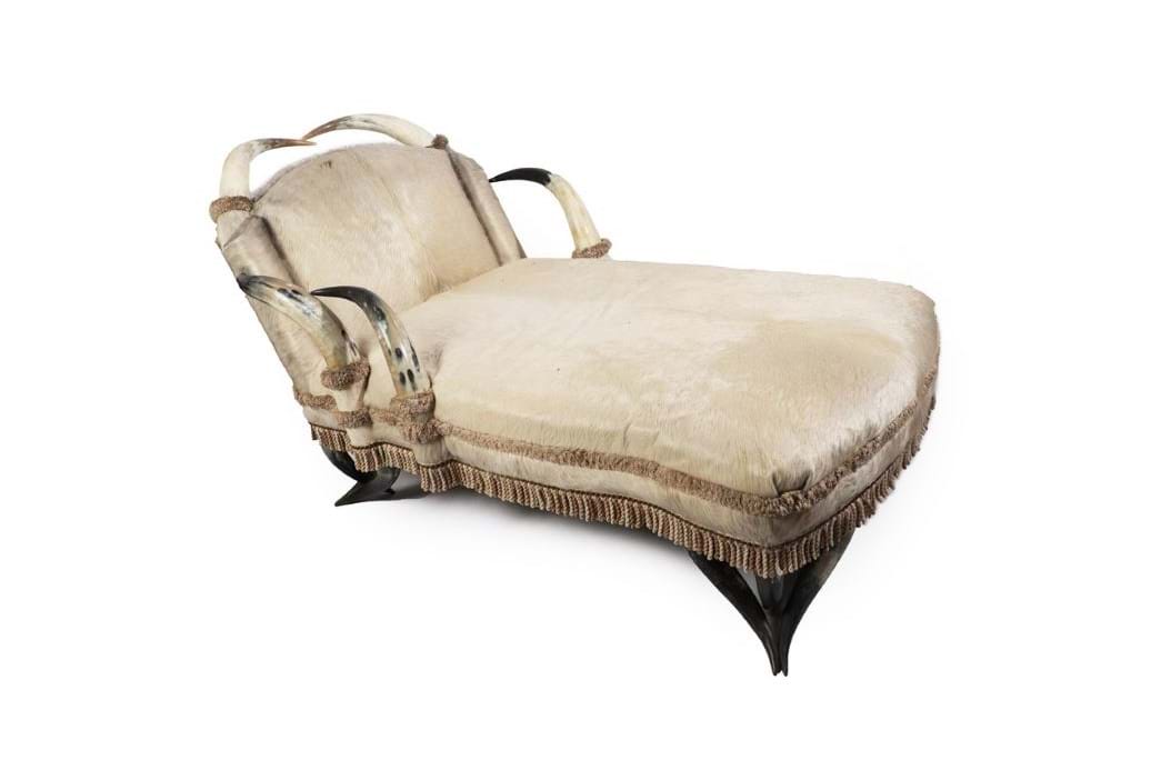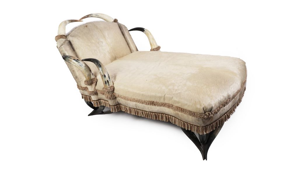 A Louis XVI Ormolu and Brass Mounted Tulipwood, Kingwood and Mahogany Hanging Wall Shelf from the late 18th Century is contrasted by a Cow Horn Day Bed by contemporary French designer Michel Haillard (estimate: £5,000-7,000), and a 19th Century canopied Porter’s Chair (estimate: £1,000-1,500). Decorative works of art bring colour and whimsy in the form of figural carvings such as a 4ft carved wooden advertising figure of a naval officer (estimate: £1,500-2,500) and a late 19th century white marble bust by Giovanni Focardi of Viscount Selby, formerly the in the collection of Lord Mowbray and Stourton and now adorned by the Curious Collector with top had and moustache (estimate: £700-1,000).