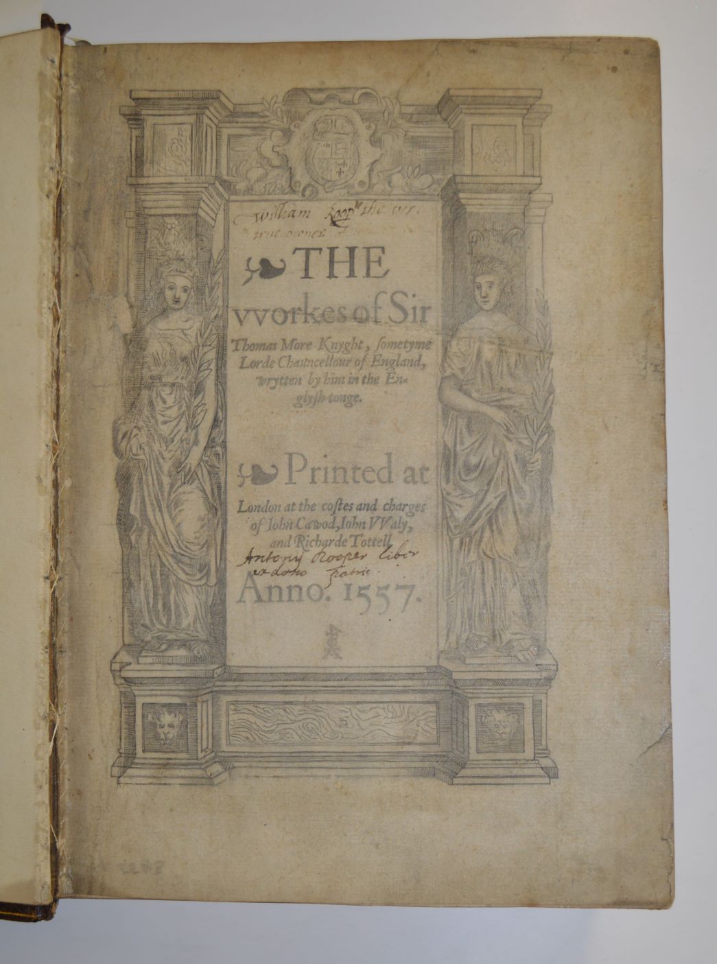 A mid-16th century copy of ‘The Workes of Sir Thomas More’, which belonged to the Roper family, sold for £10,000. William Roper, or Rooper (1496-1578) was Thomas More’s son-in-law, who had lived in More’s household for 16 years having married his daughter Margaret. The title page is inscribed ‘William Rooper, the only true owner of’. Roper, originally from Kent, was a lawyer and member of Parliament and wrote a highly regarded biography of More. The book was passed down through the Roper family.
