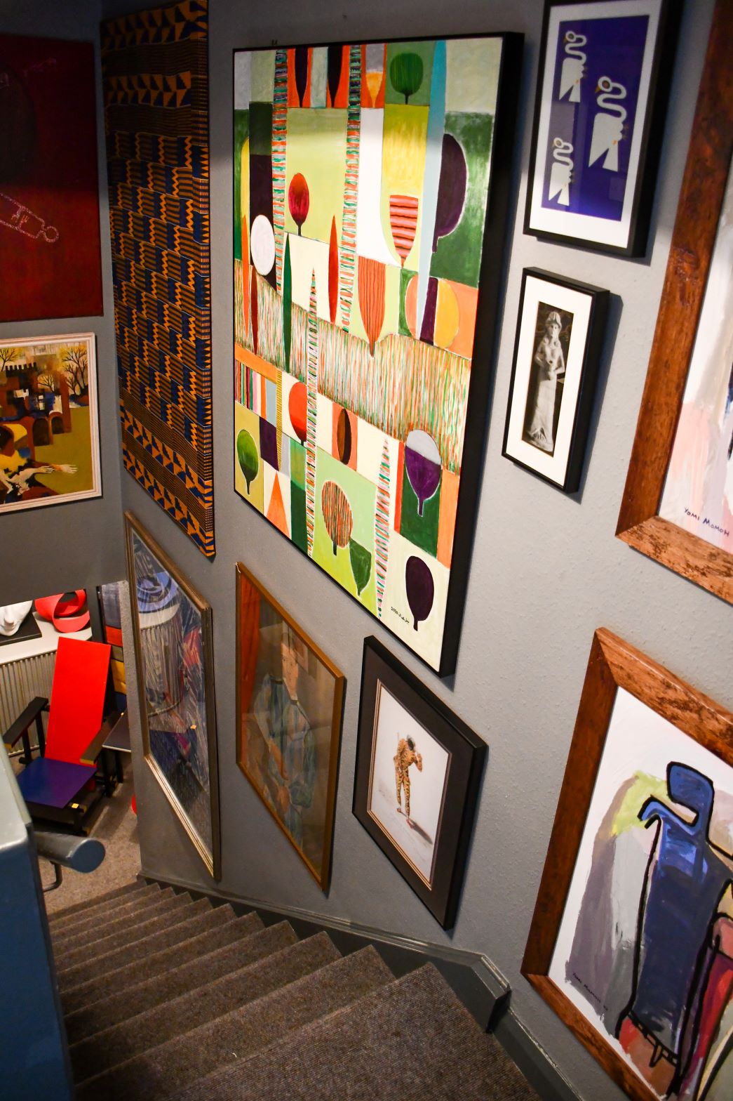 Vivid colour ties the whole collection together, exemplified by his collection of quirky works of art and harlequin themed objects and textiles inspired by his years playing for the legendary Harlequins rugby team.