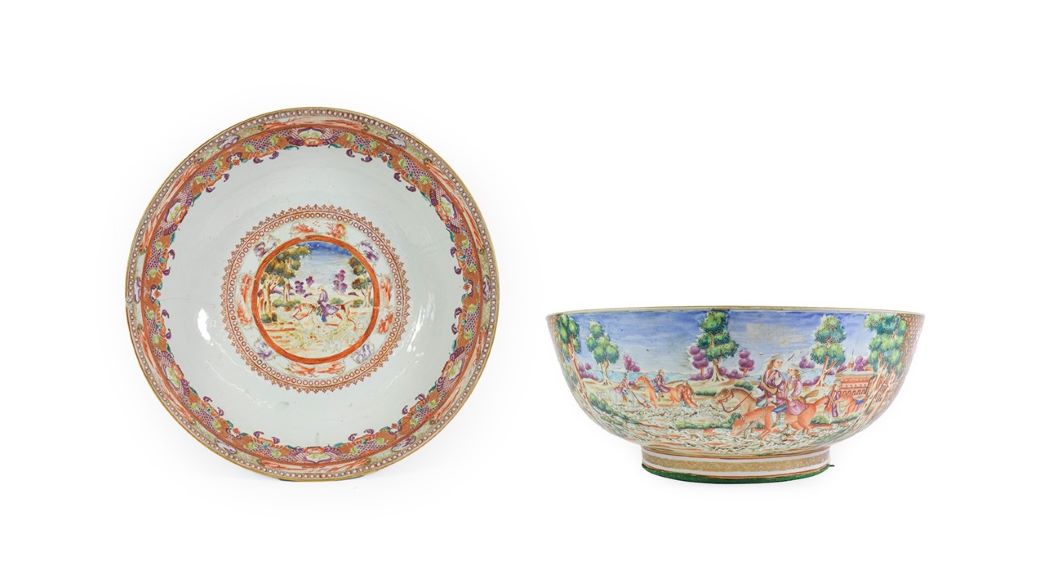 Included in the eclectic sale are such highlights as a Pair of Minton Majolica Garden Seats, made in 1863 and decorated with faux rattan seats and panels of mythical beasts and geometric motifs (estimate: £4,000-6,000 plus buyer’s premium). Suitable for a grand Country House is an impressively sized Ushak Carpet, made in Central West Antatolia circa 1890. Measuring nearly 8 metres by 6 meters, the carpet is offered with an estimate of £3,000-5,000. A Chinese Porcelain European Hunting Scene Punch Bowl, of the Qianlong period is offered with an of £1,000-1,500. The bowl is painted in famille rose enamels with panels depicting European fox hunting scenes along with Chinese landscapes in panels around the border.