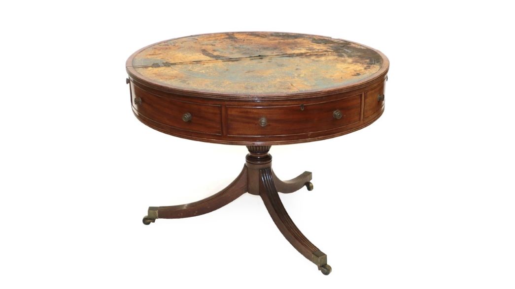 Elsewhere in the sale interesting items such as a Late 19th Century Copper Bateau Bath, likely French (estimate: £700-1,000) and a French Brass and Mother-of-Pearl Burr Walnut and Ebonised Travelling Decanter Box (£800-1,200) are joined by a good selection of furniture. Of note are a Rare George III Mahogany Drum Table, circa 1800 (estimate: £1,500-2,000) and an Early 19th Century English Joined Oak Dining Table (estimate: £1,200-1,800).