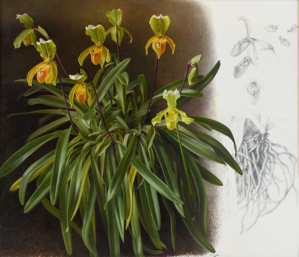 Accepted into Leeds College of Art in 1946, Booth put his studies on hold for two years whilst completed his National Service with the RAF in Egypt. Despite being criticised by his tutors for rejecting the modernist principles they were teaching, Booth stuck to his guns and worked in the traditional and precise manner to which he felt an affinity. After graduating in 1953, he was struck down by tuberculosis, which he had contracted in Egypt; however, the long months of recovery afforded him the opportunity to hone his skills as a botanical artist.