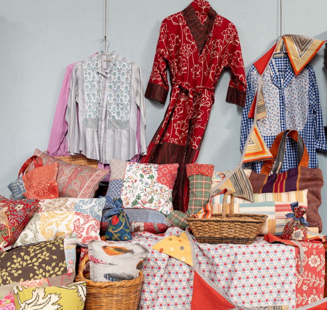 With a wealth of colour and pattern, her collection will comprise made-up cushions, bags, aprons, Kimono, shirts, throws, doorstops, Christmas stockings, tablemats and more in vintage and contemporary styles. There will also be a selection of fabric remnants as well as pieces of work-in-progress, with some rough instructions. The collection will be sold in approximately of twenty-five group lots.
