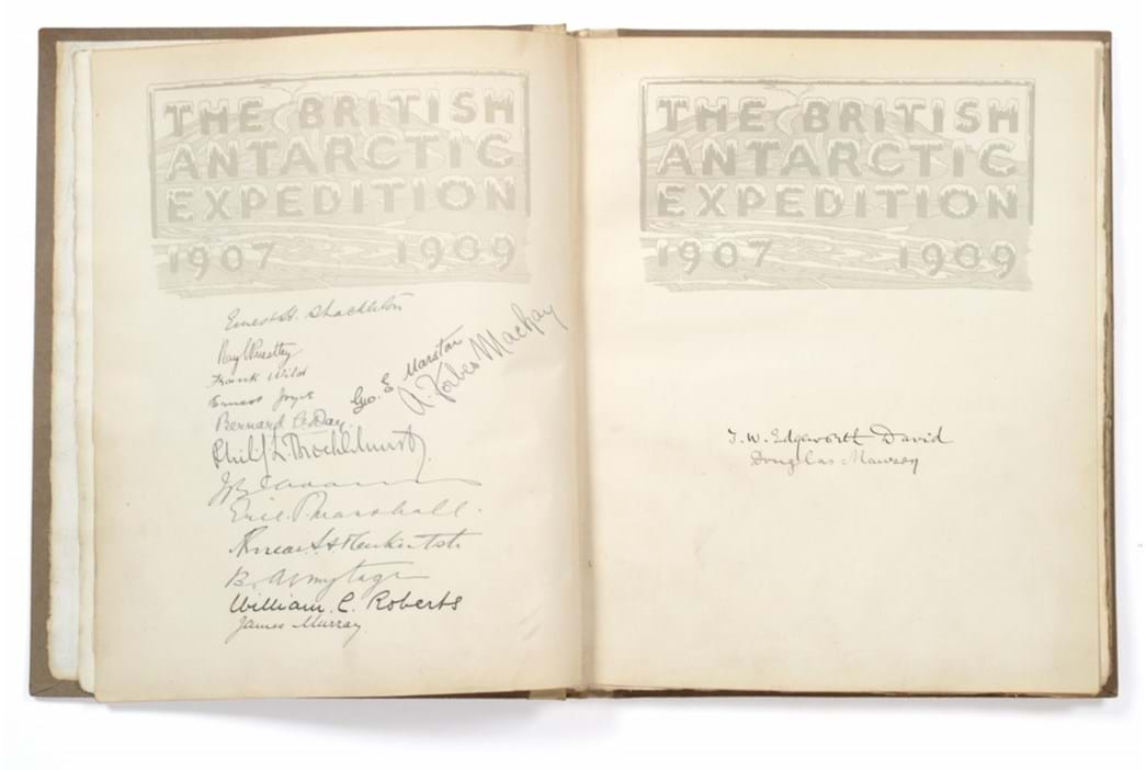 Other highlights include a copy of the three-volume The South Polar Times, published by Smith, Elder between 1907-1914, of which a numbered limited edition of 250 were produced, and in this case includes two of the very rare dust wrappers (Estimate: £4,000-8,000 plus b.p.). Also of note is a copy of James Murray and George Marston’s Antarctic Days, Sketches of the homely side of Polar life by two of Shackleton’s Men (Andrew Melrose, 1913). The limited deluxe edition is signed by Murray, Marston and Shackleton, and is being offered with an estimate of £3,000-5,000 (plus b.p.).