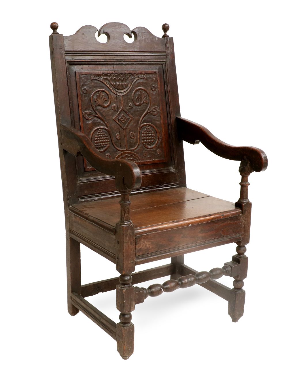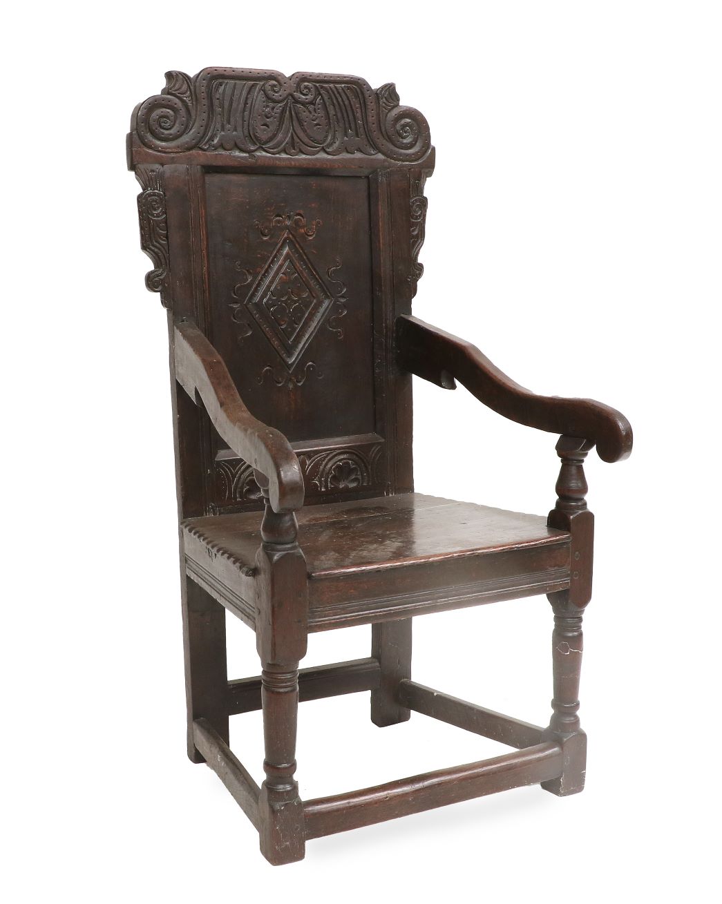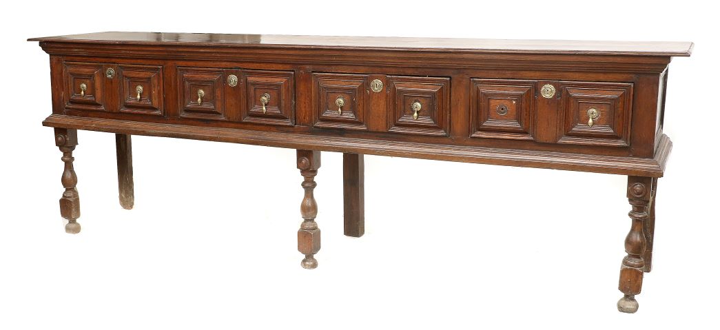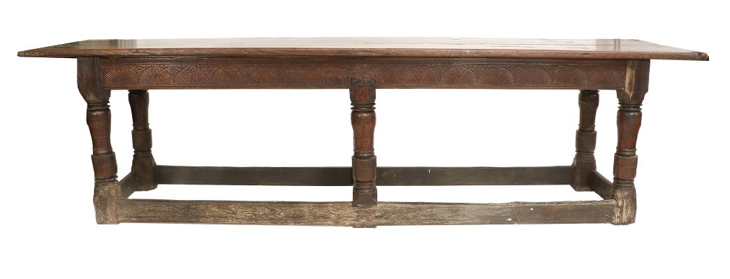 A Late 17th Century Joined Oak Refectory Dining Table (estimate: £1,000-1,500 all figures exclude buyer’s premium) is one of a number of good period oak pieces in the sale, a genre of furniture that has been much in the demand at auction recently. Other notable pieces on offer include a Late 17th Century Geometric-Moulded Straight-Front Oak Chest of Drawers (estimate: £500-700), a Late 18th Century Joined Oak Wainscot Armchair (estimate: £300-500), a Geometric-Moulded Oak Open Low Dresser, Late 17th Century (estimate: £2,000-3,000) and a Joined Oak Wainscot Armchair, late 17th/early 18th century (estimate: £300-500). Interesting pieces of vernacular furniture include a Late 18th/Early 19th Century Ash and Elm-Seated Stick-Back Windsor Armchair, probably made in the West Country (estimate: £300-500).