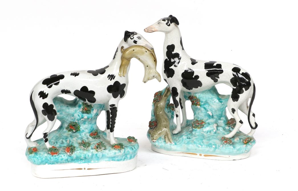 Highlights of the English pottery in the sale include a Pair of Staffordshire Pottery Disraeli Greyhounds made circa 1850 (estimate: £200-300), a Spode Pearlware Indian Sporting Series Meat Dish made circa 1810 (estimate: £300-400), and a selection of interesting 18th century flower bricks, including an English Delft Flower Brick made circa 1750 (estimate: £300-500).