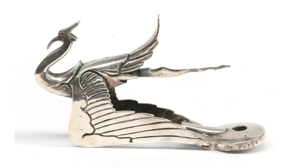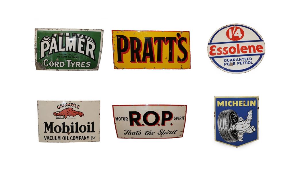 A private collection of vintage signs includes a rare sign for Palmer Cord Tyres, made by Hancock and Corfield Ltd or Mitcham, and an Esso Auto Diesel Depot sign, both offered with estimates of £600-800. A good range of car mascots are on offer too, such as a rare 1920s Art Deco Wild Swan mascot, designed by Francis Bazin (estimate: £500-700).
