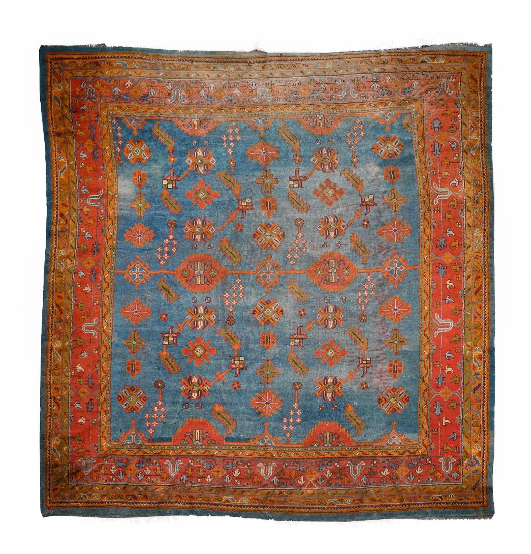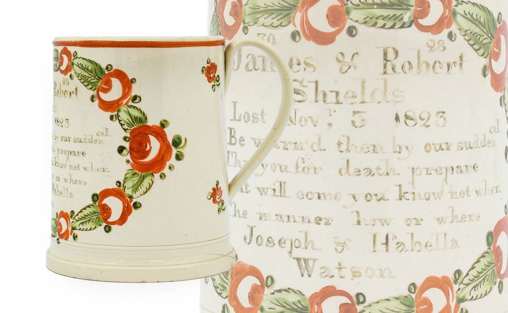 Further lots of note in the sale include a commemorative mug, possibly made in the Newbottle Pottery circa 1823 remembering two victims, Robert and James Shields, of the Plain Pit disaster at Rainton Colliery, Houghton-le-Spring in which 53 men and boys were killed (estimate: £150-200). Interesting clocks include an 8-inch brass dial striking hooded wall clock made by ‘T.B’ circa 1720 (estimate: £800-1,200), a circa 1880 mahogany wall timepiece by Frederick Cox of London (estimate: £350-450), and a mahogany inlaid table timepiece made by Barraud & Lunds of 12 Bishopsgate Street, London circa 1900 (estimate: £300-400). Finally, a good circa 1900 Ushak carpet from Central/West Anatolia with an aquamarine field is offered with an estimate of £1,500-2,500.