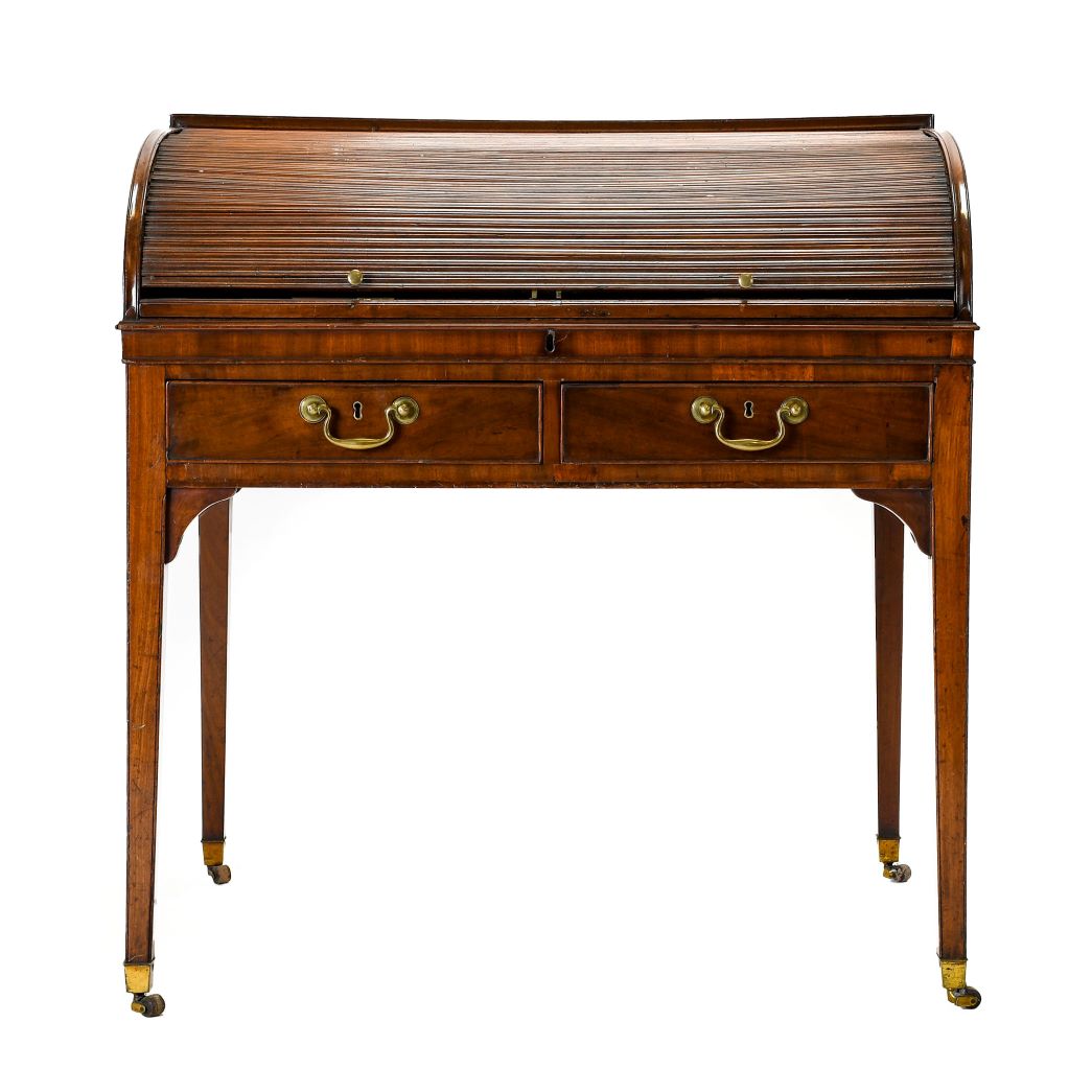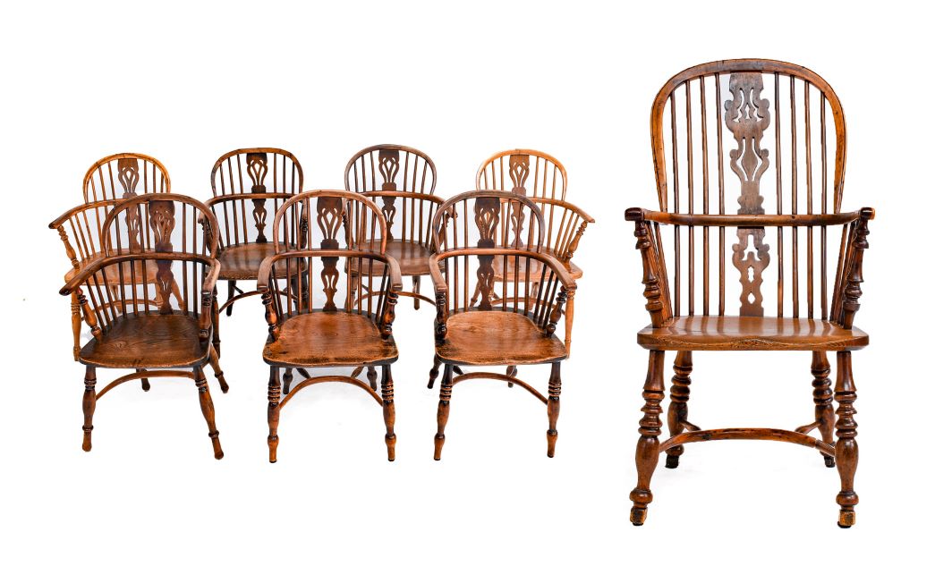 Good furniture on offer includes a harlequin set of eight mid-19th century yew and ash Windsor armchairs (estimate: £3,000-4,000), a rare 18th century eight to ten-seater solid yew gateleg dining table (estimate: £1,500-2,000), and a late 19th century wing-back sofa attributed to Whytock and Reid of Edinburgh (estimate: £400-600). Also of note is a pair of late Victorian circa 1890 walnut writing tables by James Shoolbred, a late George III mahogany tambour-front writing desk, both offered with estimate of £600-800, and a satinwood and polychrome painted Carlton House style desk offered with an estimate of £2,000-3,000.