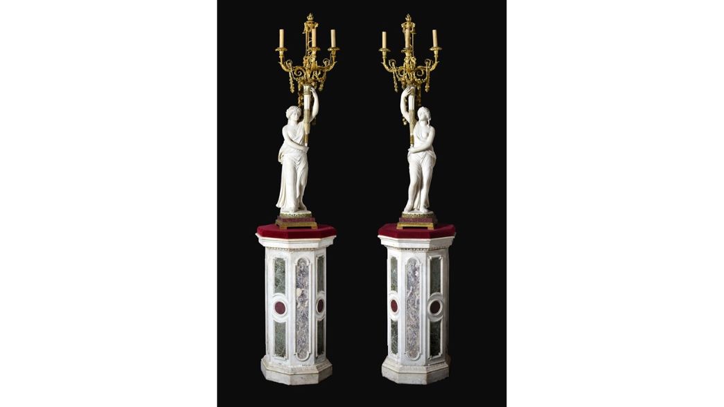The figures are inspired by the famed Four Seasons candelabra made by sculptor Jean- François Lorta in 1788 for two of Louis XV’s daughters, Adelaïde and Victoire, to decorate the grand salon of the Château de Bellevue on the outskirts of Paris. The set were removed from the Chateau following the Revolution, and firstly resided in Empress Josephine’s salon in the Tuileries before being split up and housed in Fontainebleau and Versailles. The set was later reunited at the Louvre in the late 20th century, where they remain today.