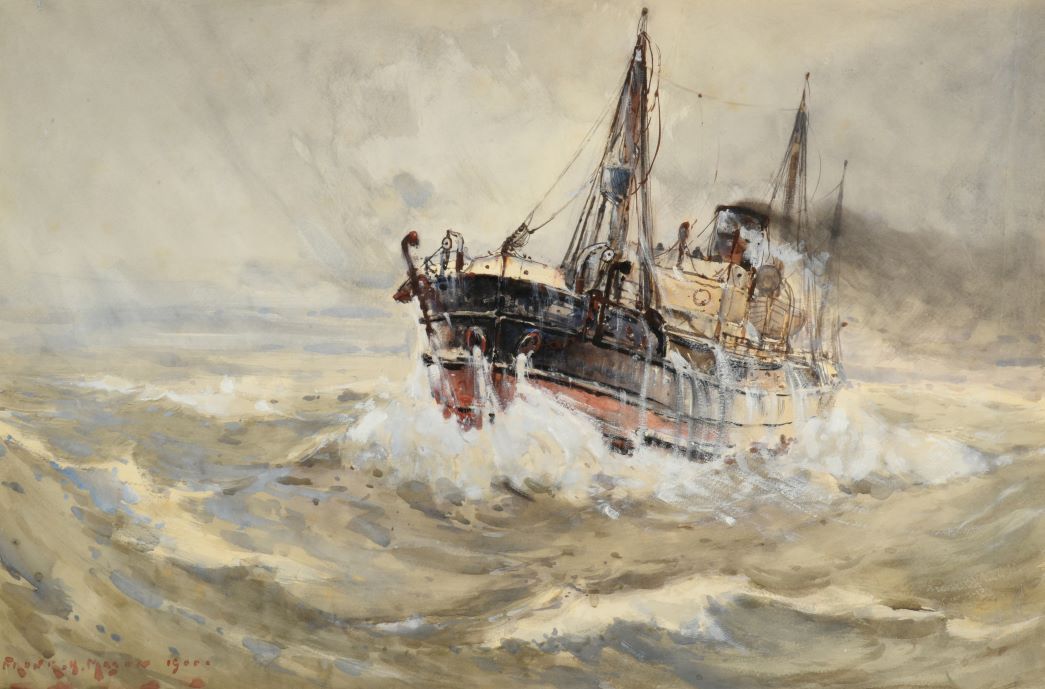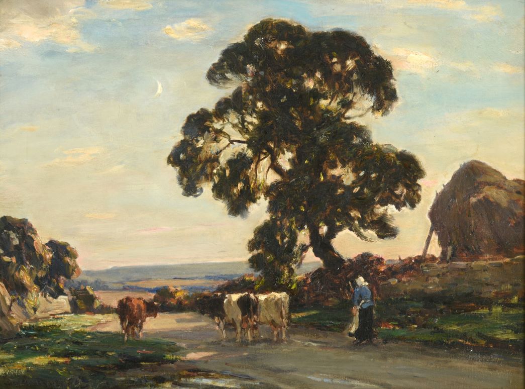 Highlights of the collection include ‘Loaded Hay Wagon and Haymaking Before a Sun Drenched Coast’ by Arthur A Friedenson (1872-1955) (estimate: £1,000-1,500 plus buyer’s premium), ‘Bringing Home the Cows’ by Owen Bowen (1873-1967) (estimate: £1,500-2,500), “Mending the Nets” by Ralph Hedley (1848-1913) (estimate: £800-1,200), and ‘Trawler at Sea’ by Frank Henry Mason (1875-1965) (estimate: £700-1,000).
