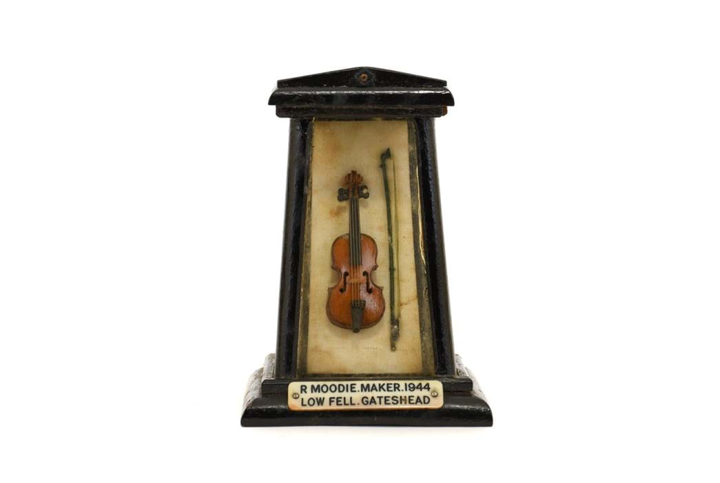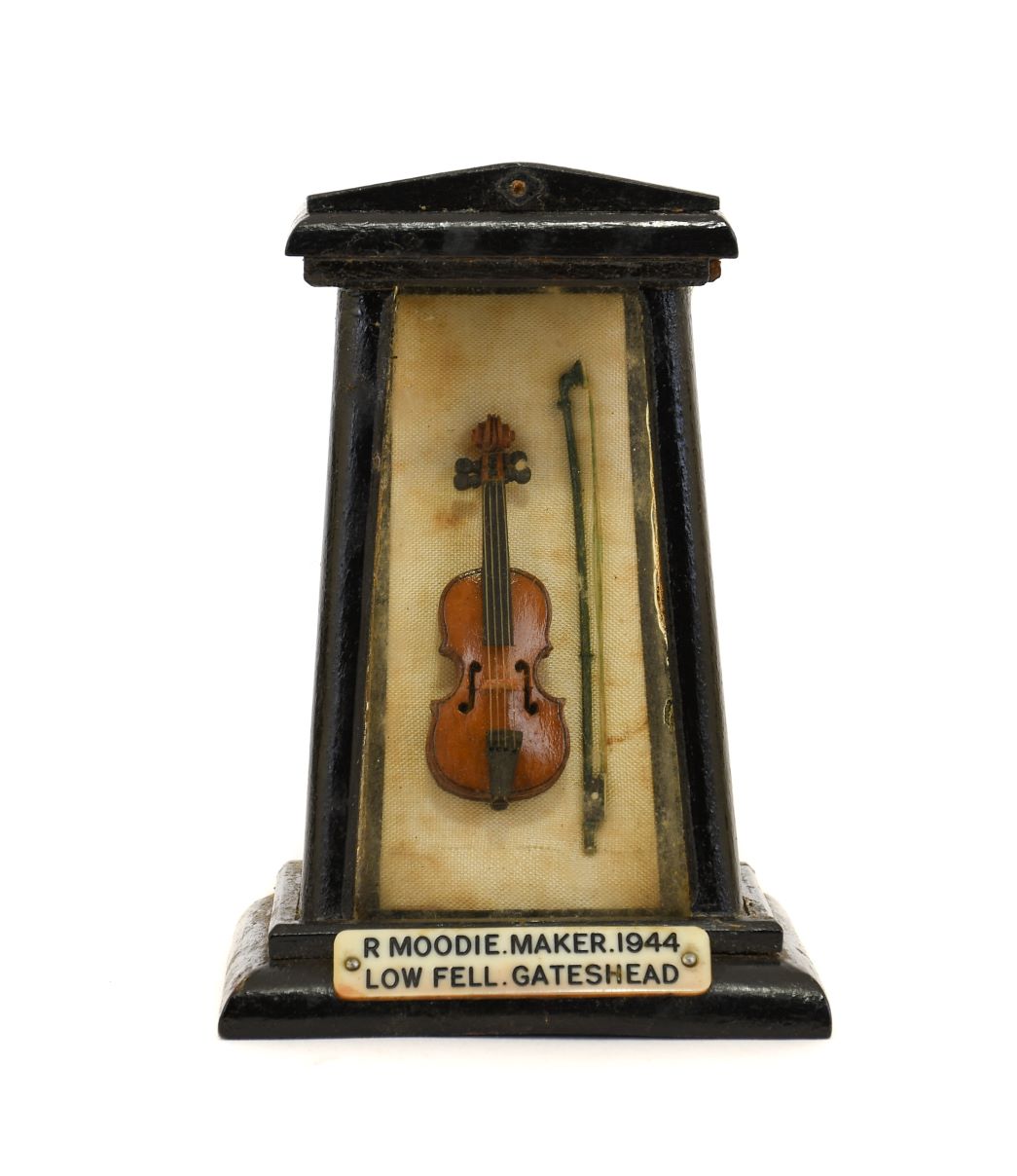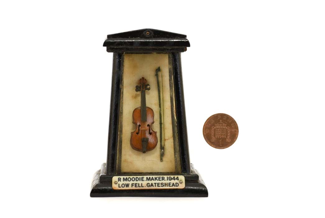 A miniature violin measuring 1 7/8 inches and made in 1944 by Robert Moodie of Gateshead is coming up for auction in the Scientific and Musical Instruments Sale at Tennants Auctioneers on 28th September, with an estimate of £80-120 (plus buyer’s premium).