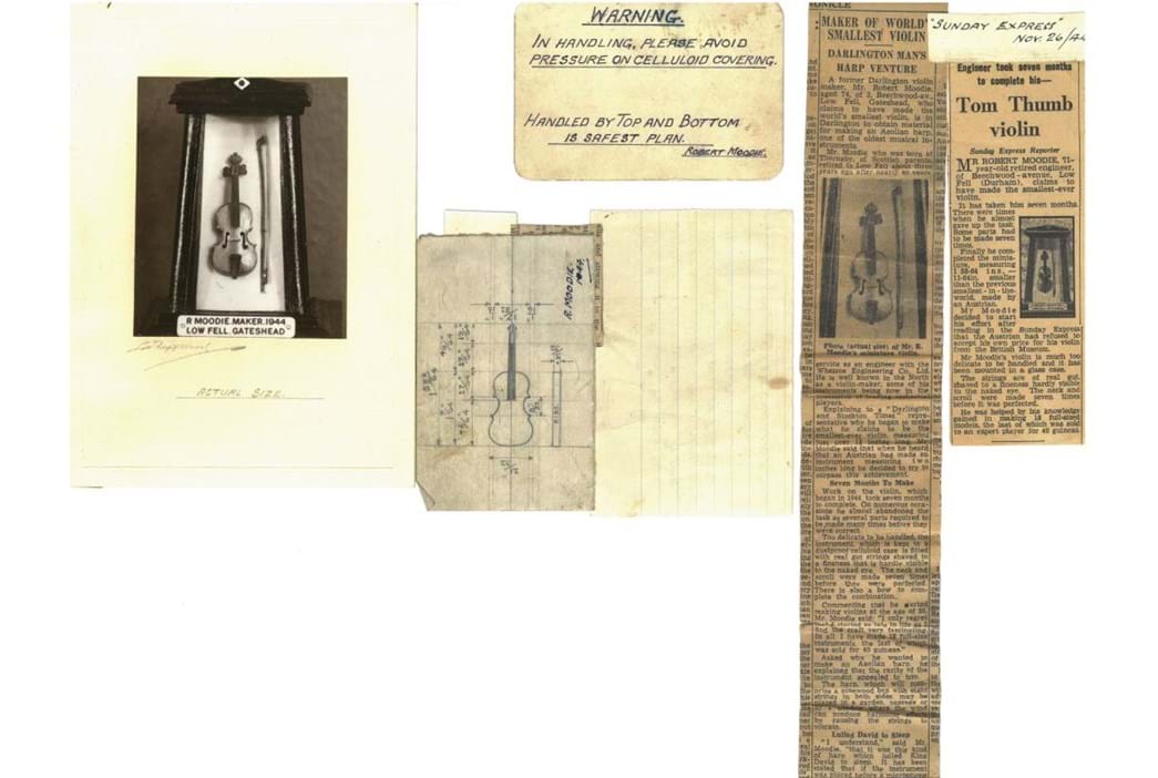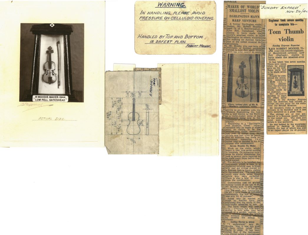 Mr Moodie, a retired engineer originally from Darlington, took up violin making at the age of 50, and at the time of making the miniature version had made 18 full size instruments. Having seen a newspaper article about the ‘world’s smallest violin’, which was made by an Austrian maker and measured 2 inches in length, he was inspired to beat the record.