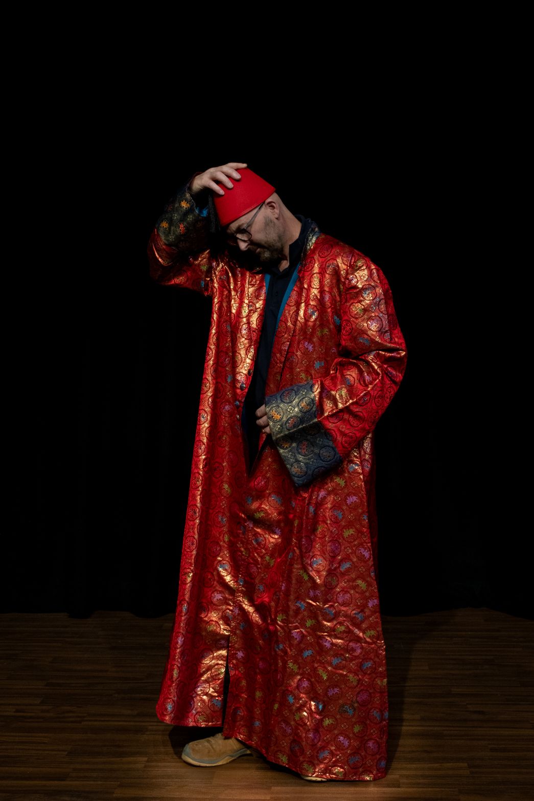 On 15th April 1984, Cooper stepped onto the stage at Her Majesty’s Theatre, London for a live televised performance. Wearing this red silk brocade robe and his trademark fez, he was to perform an act in which ever increasingly sized objects were passed by the show’s host Jimmy Tarbuck through the stage curtain and an opening panel in the back of the garment, to appear like magic from beneath the robe to the delight of the audience. In a moment that shocked the nation, Cooper suffered a heart attack part-way through the act and collapsed. Sadly, he was subsequently pronounced dead at Westminster Hospital.
