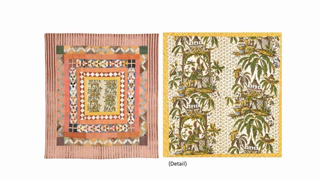 Antique quilts are well represented, with a beautifully preserved example dating to 1800-1820 on offer with an estimate of £600-800. The patchwork quilt has a central chinoiserie panel surrounded by colourful glazed chintz; it appears never to have been used. From the same vendor comes an early 19th century patchwork quilt featuring an intricate 32-point mariner’s compass design (estimate: £600-800) and a early 19th century quilt featuring quartered circles known as a ‘jockey hat’ design (estimate: £500-800). The auction will also see the sale of the second part of the Jan Hassard Heritage Quilt Collection, which include examples from America, Canada, France and the UK.