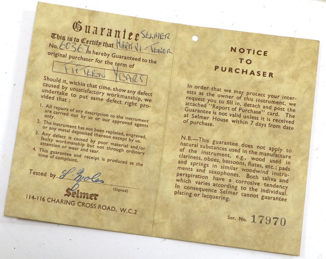 The two present examples date from 1955, a golden era of handmade instruments, and are sold with accompanying original invoices and documentation. In excellent condition, these desirable early models were made shortly after the production of the Mark VI began, and they exhibit the rich honey coloured original lacquer, rather than the clear lacquer found on later models.