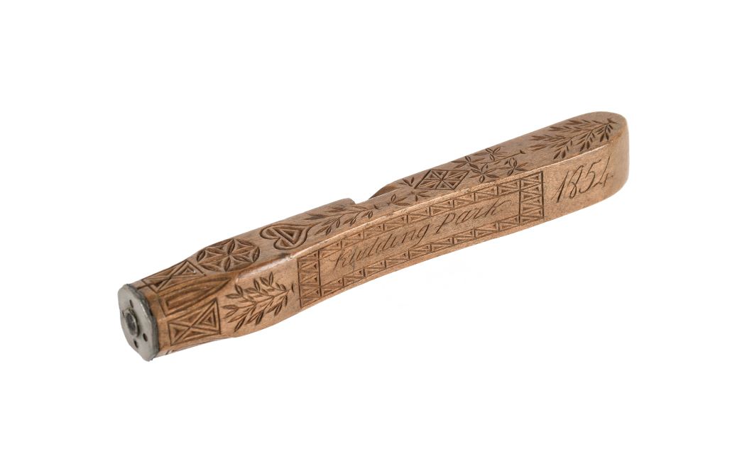 Amongst the aristocratic and Royal finery in the sale are a group of parasols and a walking stick made in the early 19th century and emblazoned with the crest of Princess Mary, Countess of Harewood and daughter of George V. The four parasols and one walking stick will be sold in three lots with estimates starting at £250-350 (all figures exclude buyer’s premium). Also with a Yorkshire connection is an intricately carved Knitting Stick, inscribed with ‘Miss G Young’ and ‘Rudding Park’, a Georgian manor on the outskirts of Harrogate. Made in 1854, the knitting stick will be offered with an estimate of £120-180.