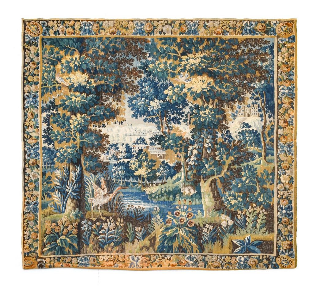 Finally, a good late 17th century Aubusson Verdure Tapestry, woven in silks and wool depicting a rural scene of birds and animals sold for £5,000.