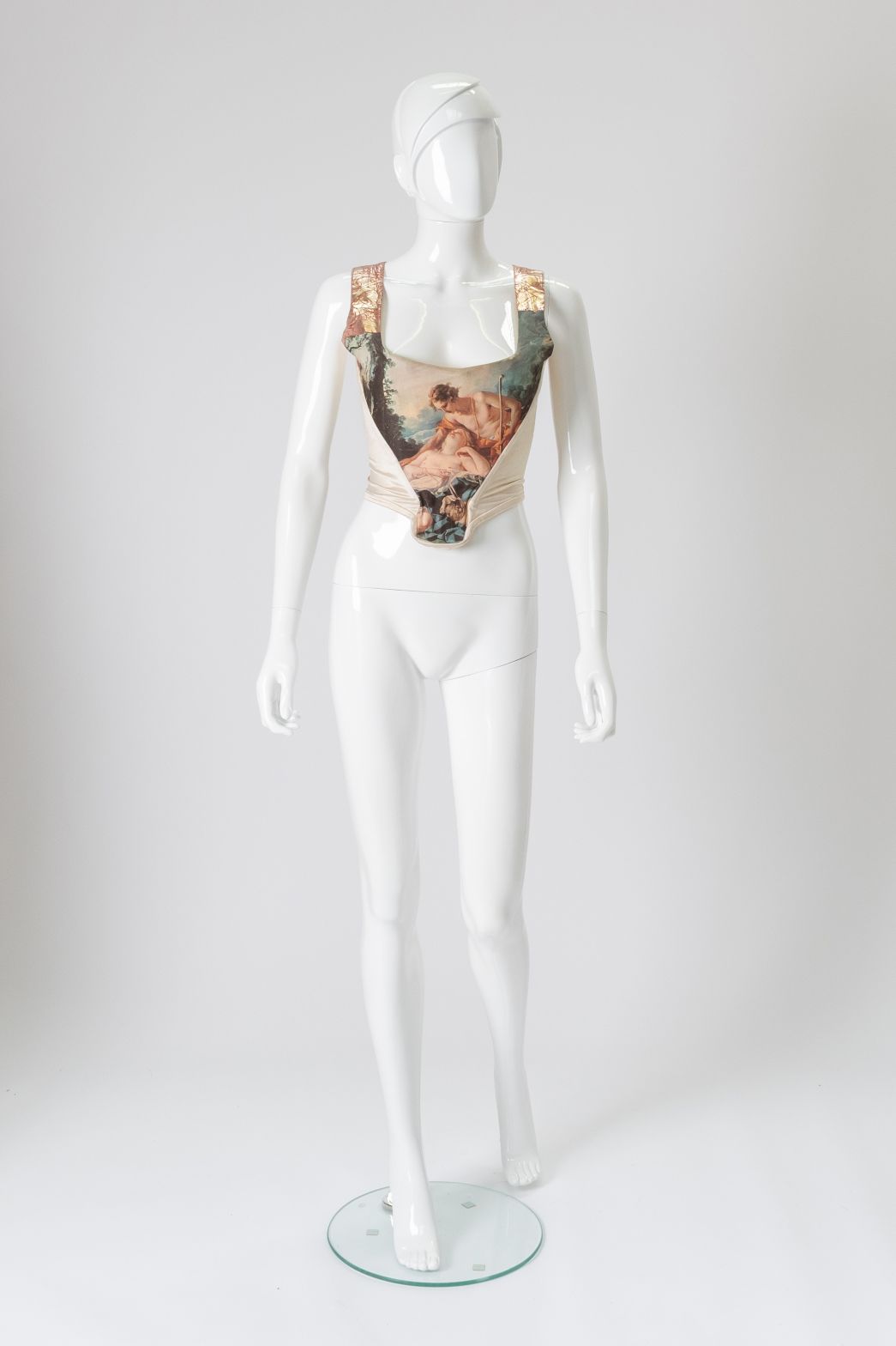 One of the most iconic pieces in the collection is the two-piece Harlequin Mini-Crini from the Voyage to Cythera Collection, A/W 1989, inspired by figures from the Italian ‘Commedia Dell’Arte’ and the paintings of Jean-Antoine Watteau, which is offered with an estimate of £8,000-12,000 (all figures exclude buyer’s premium). Further stand-out lots include a Corset from the Portrait Collection, A/W 1990/1 (estimate: £1,000-1,500), a Pin Stripe Suit from the S/S 1994 Café Society Collection (estimate: £500-800) and a Voyage to Cythera Harris Tweed ‘Savile’ Jacket and Nude Leggings, the latter featuring a mirrored fig leaf (estimate: £2,500-3,500). Under the Vivienne Westwood and Malcolm McLaren Seditionaries label is ‘The Great Rock N’Roll Swindle’ T-Shirt from circa 1978, featuring images of Sid Vicious (estimate: £500-800).