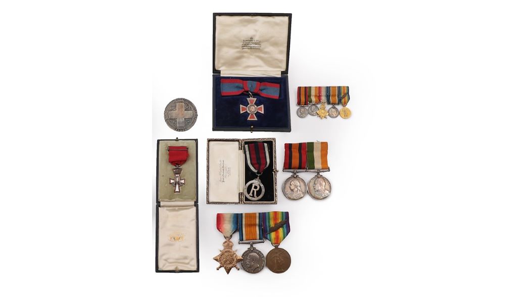 Medals awarded to women rarely appear at auction, but a Boer War and First World War Group of Nursing Medals and Badges awarded to Nursing Sister Ellen Mary Smyth are on offer in the sale with an estimate of £900-1,200. Smyth was a founder member of the Queen Alexandra’s Imperial Military Nursing Service Reserve when it was established in 1902. At the outbreak of the First World War, she left private nursing in Portugal to serve at home and in France, and she was mentioned in a dispatch from General Haig. The medals include the Queen’s South Africa Medal and King’s South Africa Medal, 1914 Star, British War Medal and Victory Medal, the Royal Red Cross 2nd Class (George V), and Queen Alexandra’s Boer War Cross and they are sold alongside further items relating to Smyth.