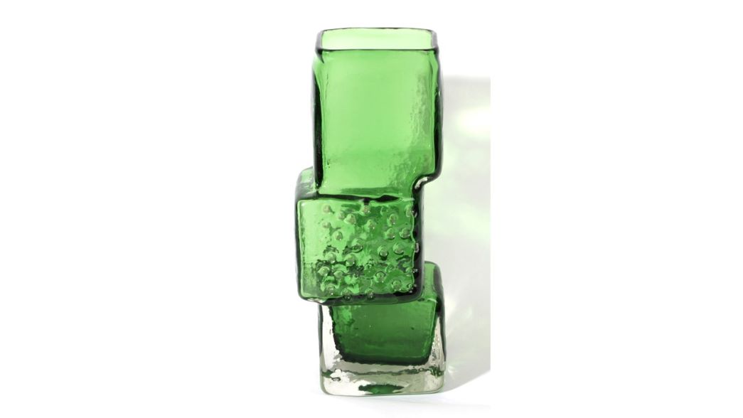 The most iconic and collectable range of Whitefriars glass today is that made during the 1950s and 1960s. In 1954 Geoffrey Baxter joined the firm, a designer and graduate from the Royal School of Art. He departed from traditional forms and methods of production and conjured up the sense of freedom in an era open to experimentation and new ideas. Indeed, he famously used nails, wire and bark to create his prototype moulds, into which glass was hand-blown. In 1963 the factory officially changed its name to Whitefriars Glass and the late 1960s saw the release of the Textured range of glass with its well-known shapes such as Drunken Bricklayer and Banjo, in vivid colours such as cinnamon, indigo, willow, kingfisher blue and tangerine. Designed by Geoffrey Baxter, it is these pieces that are the most sought after on the secondary market today.