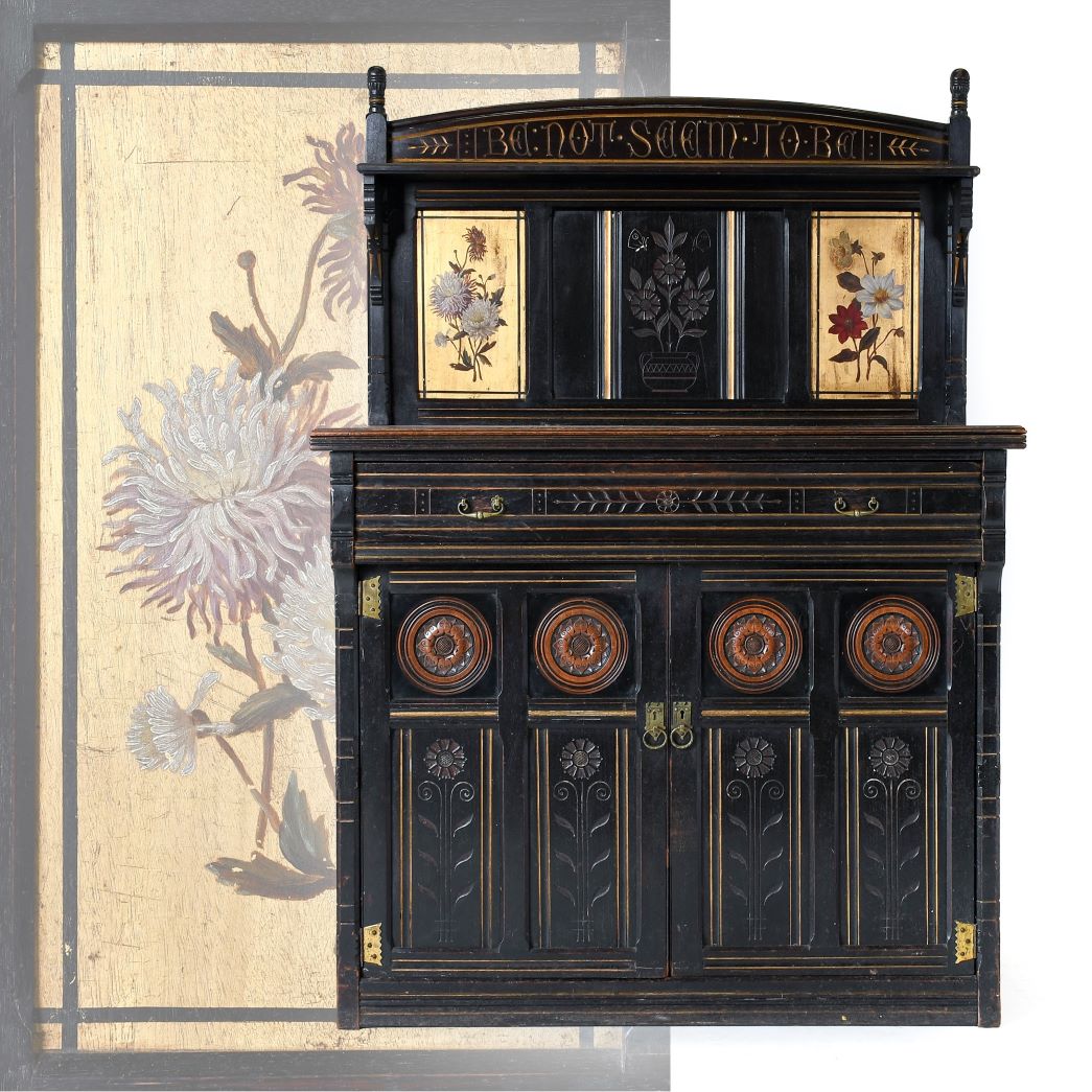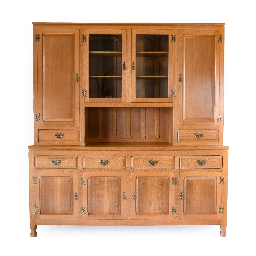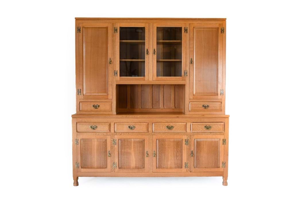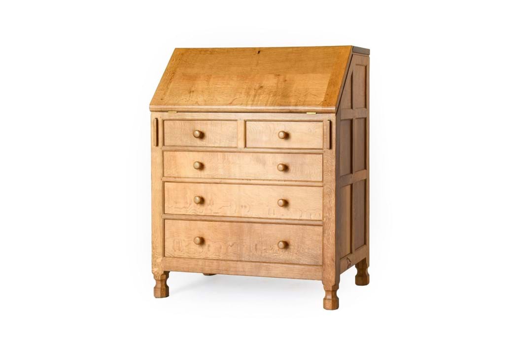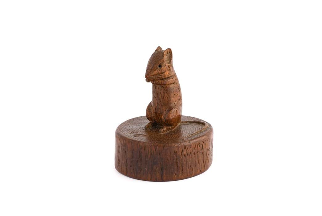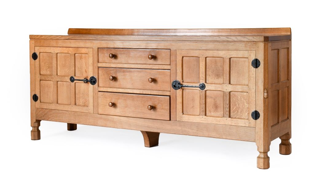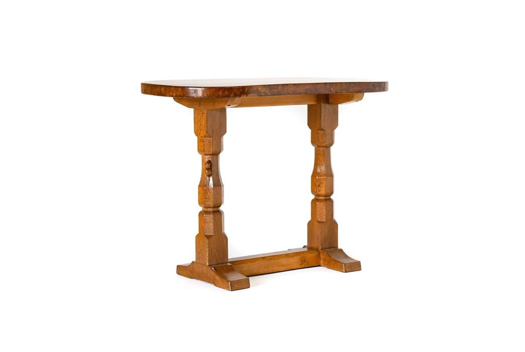 Yorkshire oak furniture and furnishings once again proved its strength in Tennants Auctioneers’ 20th Century Design Sale on 25th June, which saw exceptional prices for pieces by both Mouseman and the ‘Critter’ craftsmen and generated a total hammer price for £142,110 for 177 lots, 73% of the sale total. Topping the sale was a 6-foot Mouseman sideboard, which sold for £5,500 (plus buyer’s premium), sideboards being amongst the most popular designs of Mouseman furniture at auction due to their practical and useful nature. A good Burr oak kidney table sold for £2,700, a newel post cap carved in the shape of an owl with mouse in one talon sold for £3,000, a carved mouse standing on a truckle of cheese sold for £3,800, and an oak fox carving by Stan Dodds for Mouseman sold for £5,200.