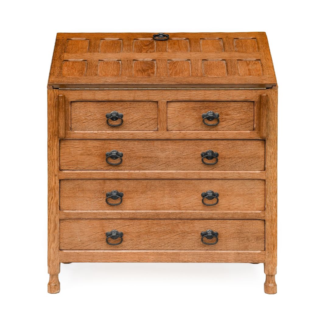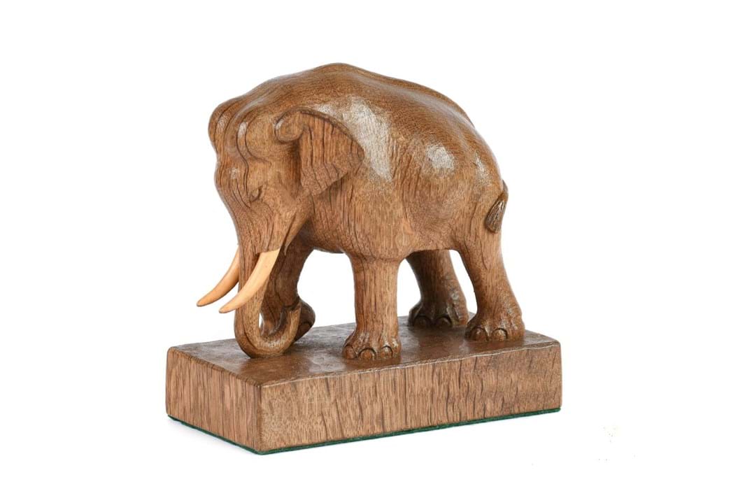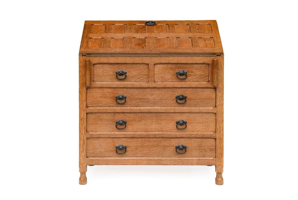 However, it was the strong selection of lots by the other Yorkshire Critter Craftsmen that saw a marked increase in demand, following on from the first ever exhibition dedicated to the Yorkshire Critters which was held at Tennants this Spring. Indeed, the sale saw the house record for a carving by Stan ‘Woodpecker’ Dodds under his own name rather that of Mouseman, when a ‘Woodpecker’ carved elephant sold for £5,200. A double pin tray made by Dodds under his earlier Rabbit signature sold well, too, at £1,100 against an estimate of £200-300. Further notable results were seen for pieces from the estate of Horace ‘Knightman’ Knight at Old Mill Furniture such as an oak three-piece suite (sold for £2,500), an oak panelled dresser (sold for £2,000), and an oak panelled bureau made by Knight and Sidney Pollard, who taught him his craft (sold for £2,200). A further oak bureau, this time by Albert ‘Eagleman’ Jeffray, sold for more than double the top estimate at £2,000.